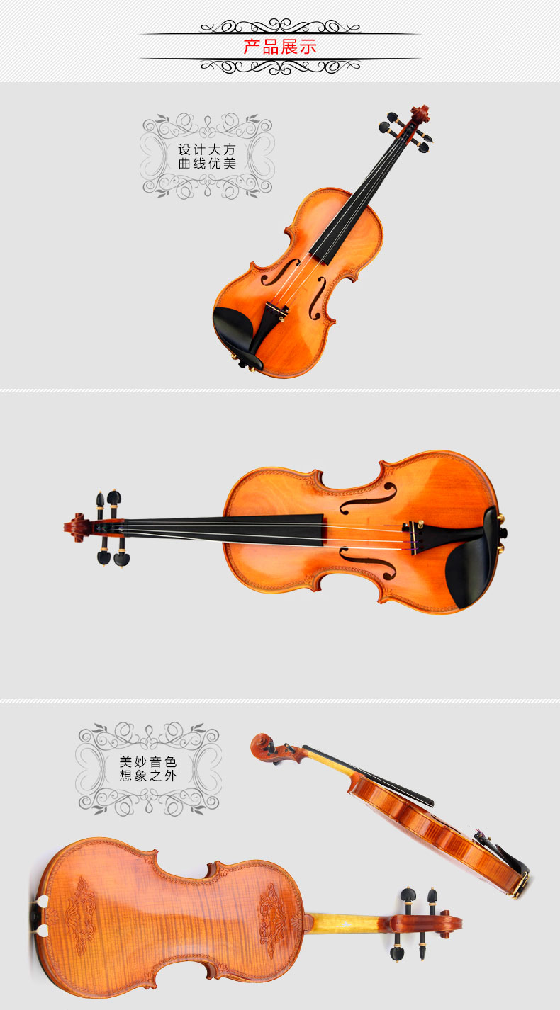 商品名称:ANDIR小提琴手工实木虎纹雕花演奏小提琴 初学考级演奏儿童小提琴