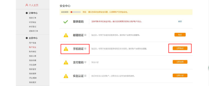 进入【我的账户】-【会员中心】-【账户安全】,点击下图中“手机验证”后的“修改”,根据引导即可完成手机验证;