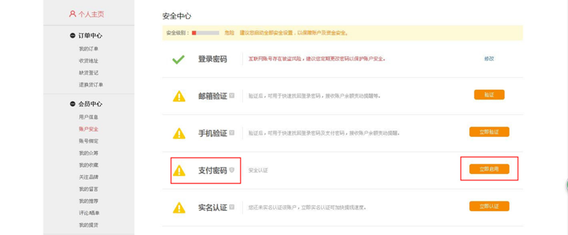进入【我的账户】-【会员中心】-【账户安全】,点击下图中“支付密码”后的“修改”,根据引导即可完成密码修改;