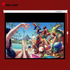 张家港红叶电动投影幕100寸16:9灰塑高清1080P投影幕3D投影幕家用