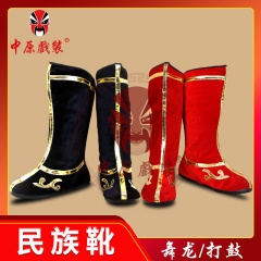 中原戏装戏曲鞋靴民族靴打鼓靴舞龙狮秧歌鞋靴子财神鞋演出长筒靴
