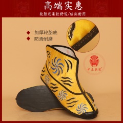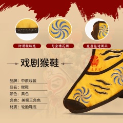 中原戏装戏剧戏曲北京猴鞋虎纹靴金黄快靴薄底靴演出鞋美猴王靴子