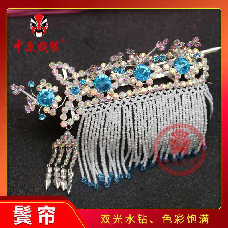 中原戏装戏剧鬓帘戏曲京豫剧头面青衣花旦头饰包头五彩木钻耳挖子