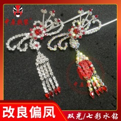 中原戏装戏曲水钻偏花改良偏凤双光七彩水钻京剧青衣花旦小姐头饰