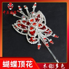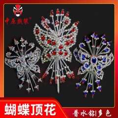 中原戏装戏曲大蝴蝶顶花双光七彩水钻头面京剧青衣花旦小姐包头饰