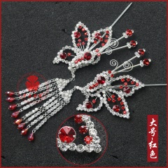 中原戏装戏曲鬓帘京戏剧青衣花旦小姐头饰双光水钻头面蝴蝶耳挖子