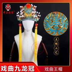 中原戏装九龙冠戏剧戏曲京剧头饰帽盔皇帝便帽刘备帽皇上帽软王帽