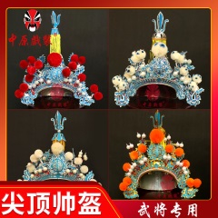中原戏装戏曲尖顶帅盔头戏剧岳飞帽将军武将帅盔京剧盔帽子一开盔