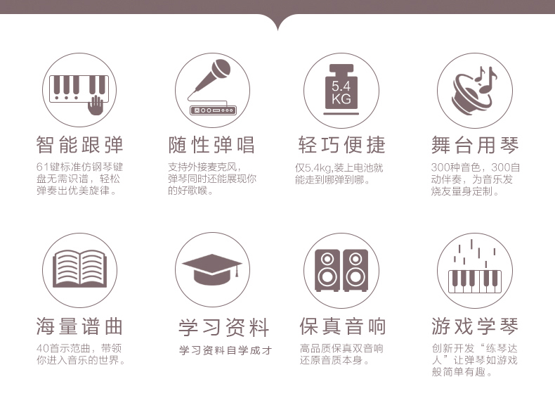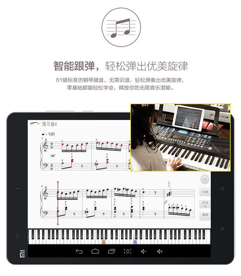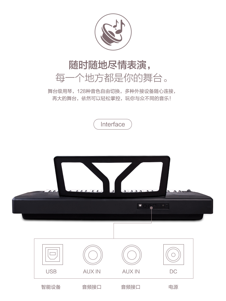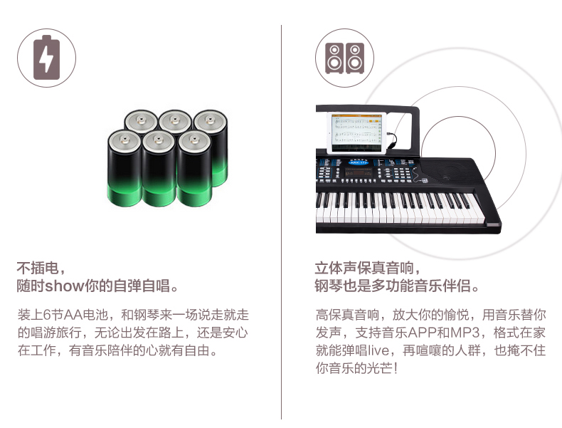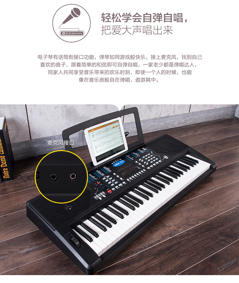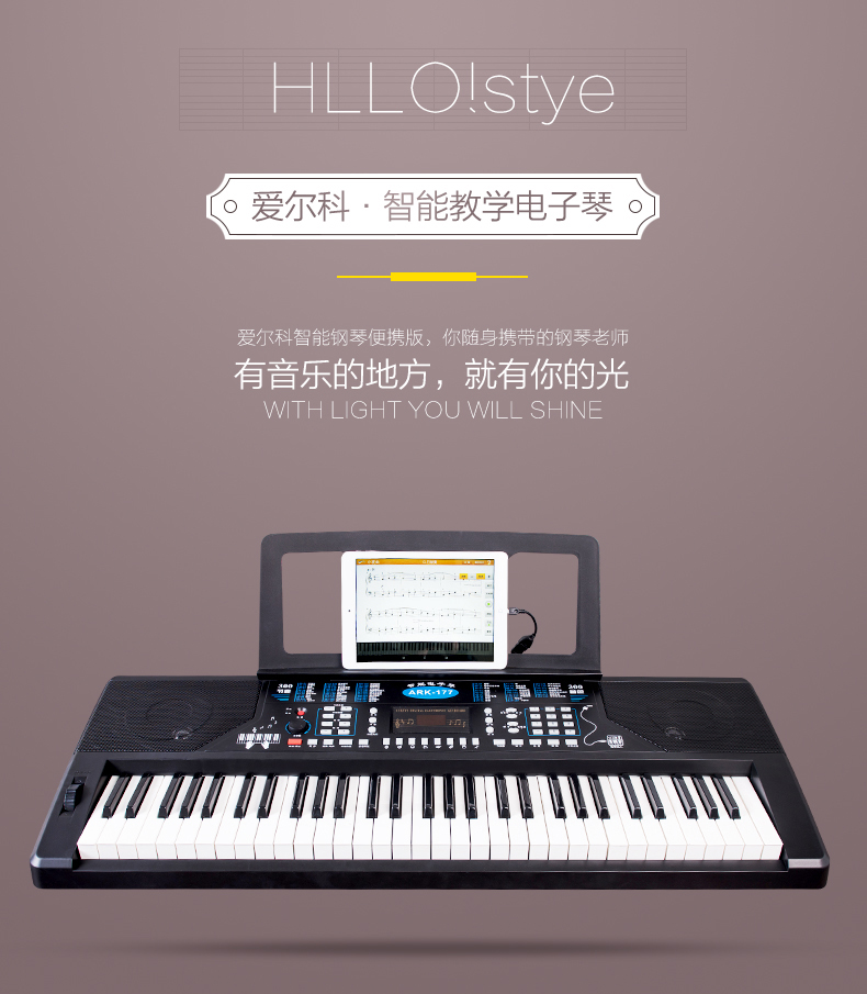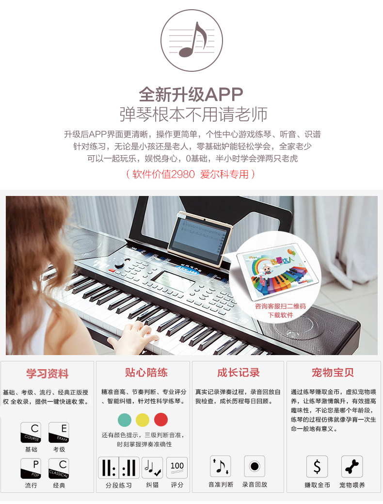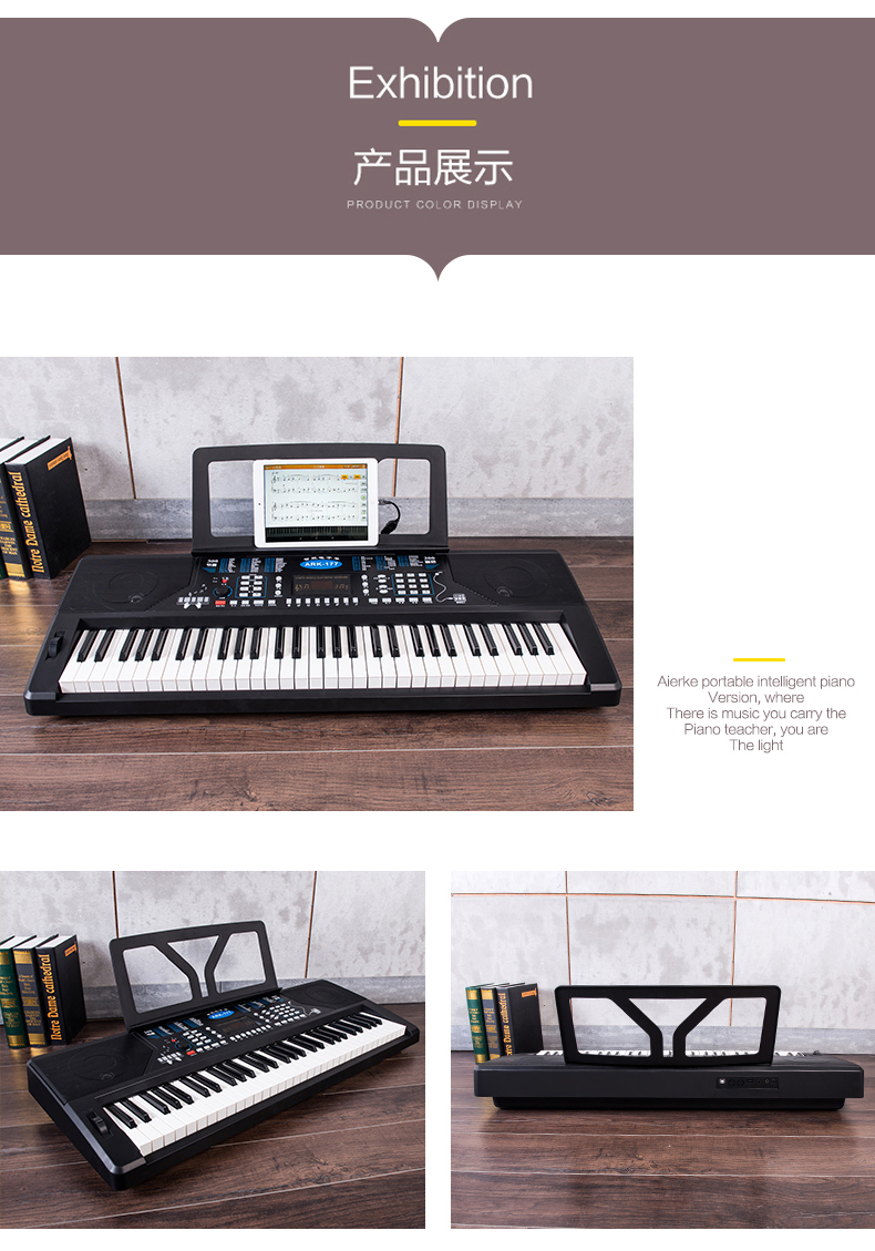 爱尔科智能电子琴 成人61键初学者 儿童教学仿钢琴键可连接APP177