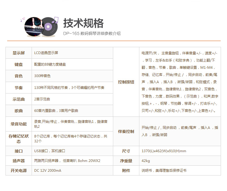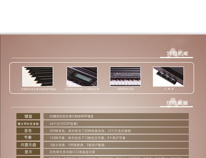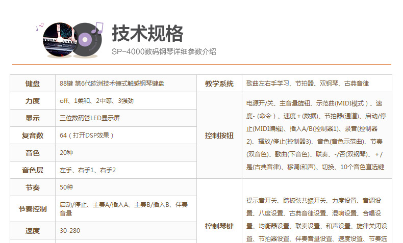 商品名称:美得理MEDELI电钢琴88键数码电子 SP-4000黑色全套
