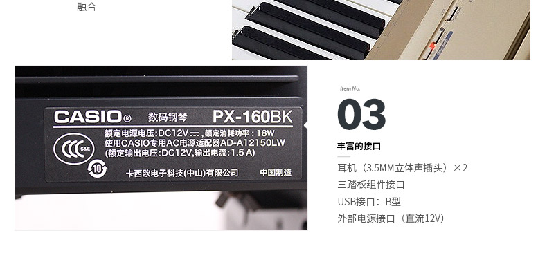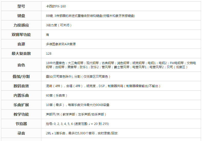 商品名称:CASIO卡西欧电钢琴PX-160重锤88键专业电子智能数码乐器键盘 黑主机+X架+单踏