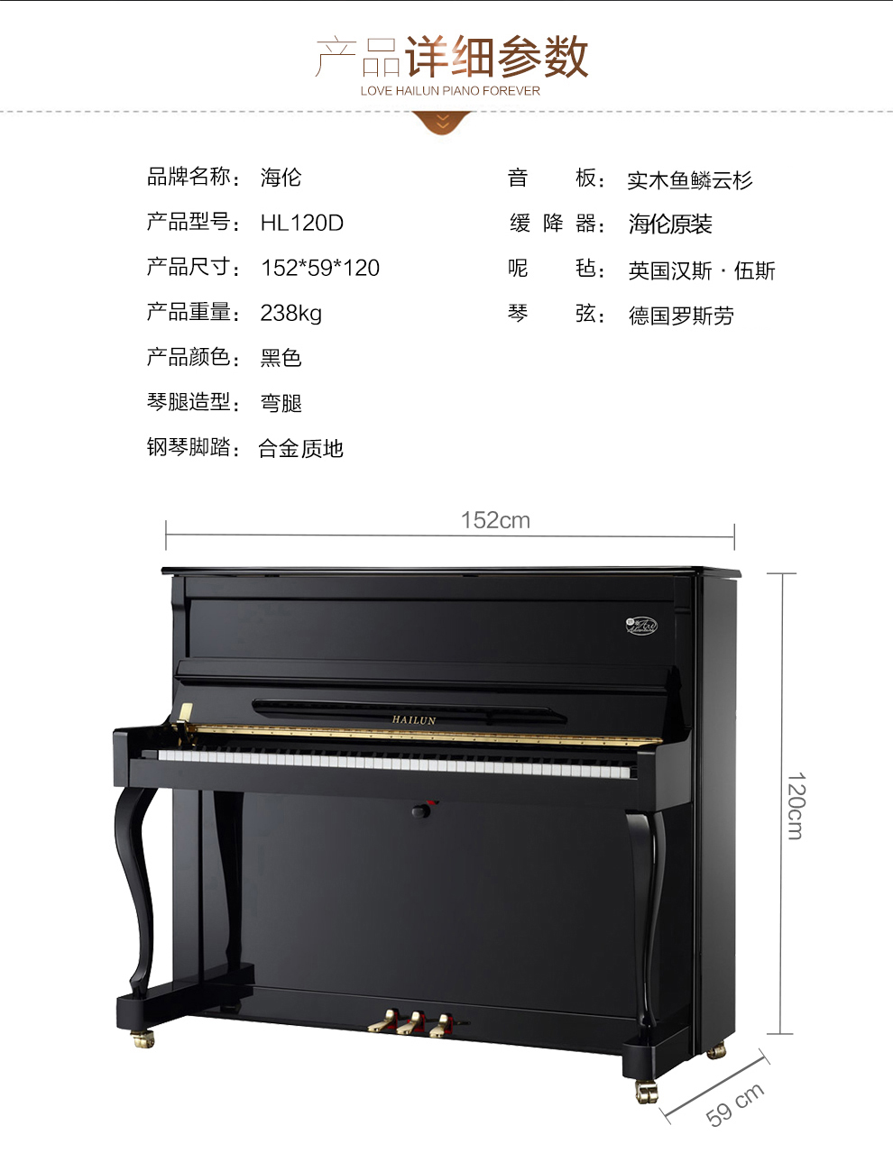 商品名称:HAILUN海伦钢琴 全新立式钢琴 120D 实木钢琴