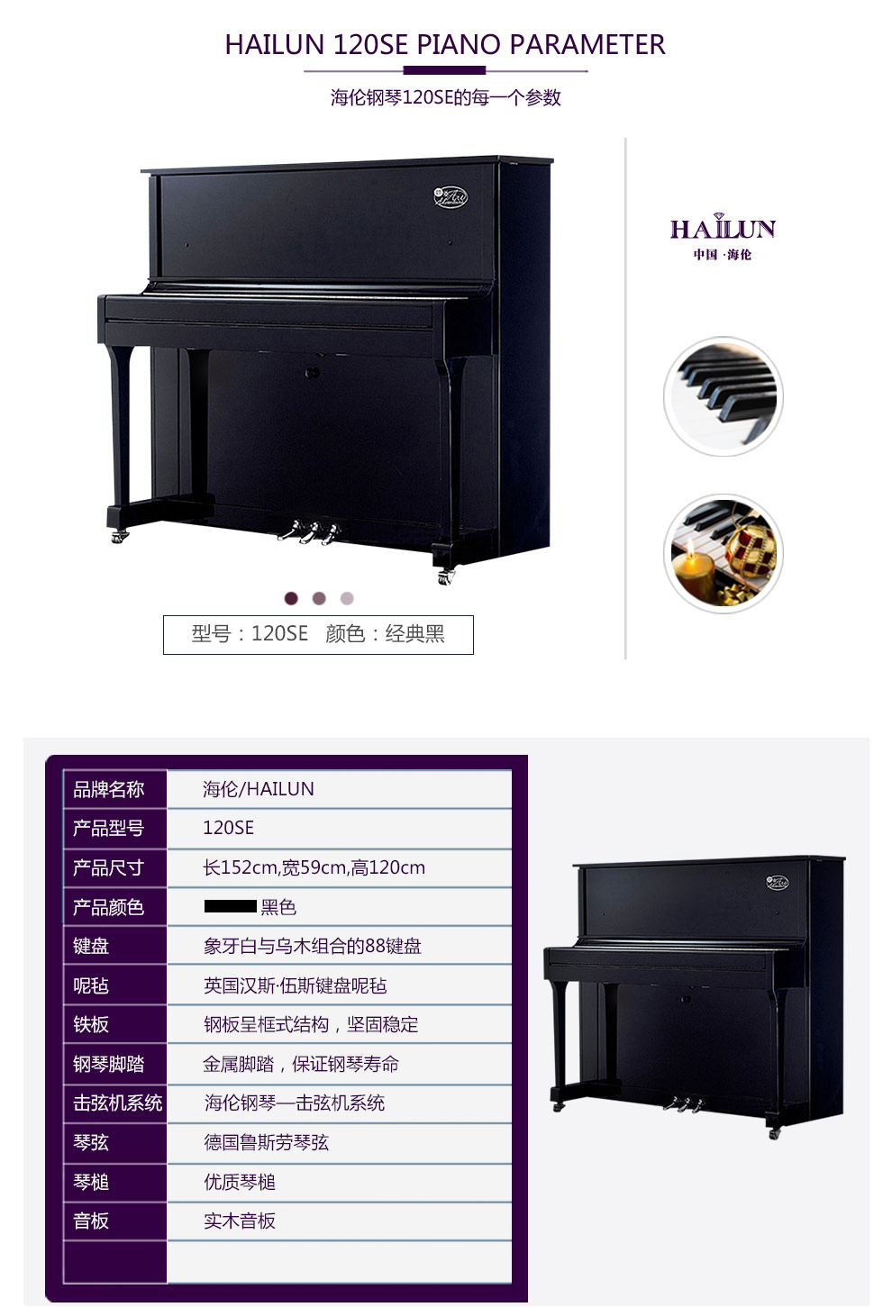 商品名称:海伦 120SE 初学家用考级家用钢琴 88键黑色漆面