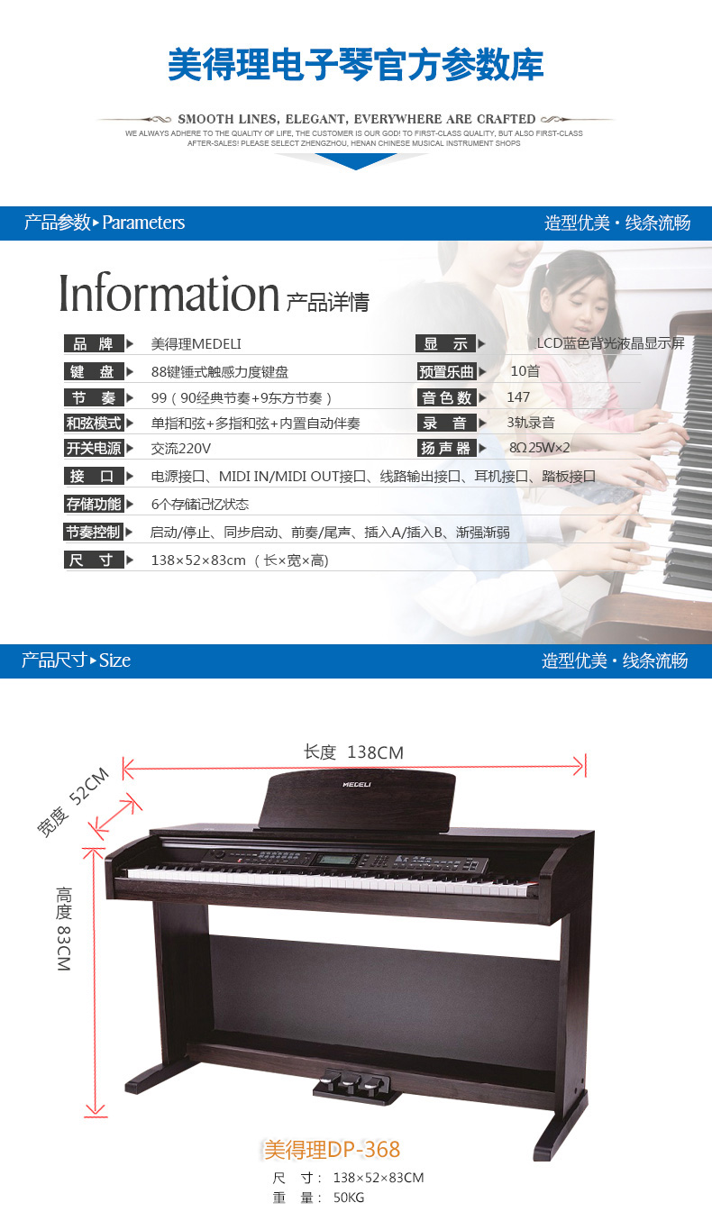 商品名称:MIDELI美得理电钢琴88键重锤DP-369S数码钢琴 电子钢琴DP369升级