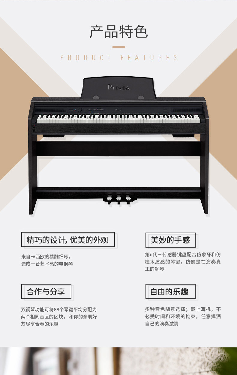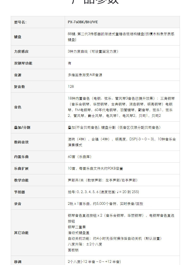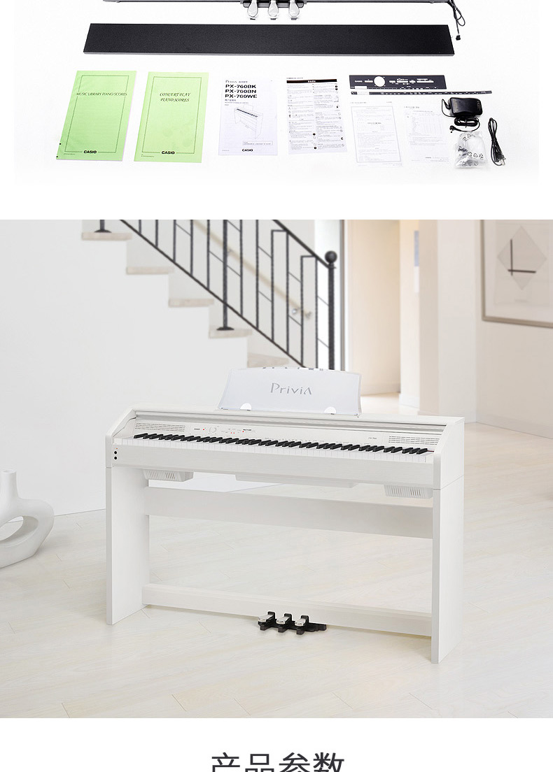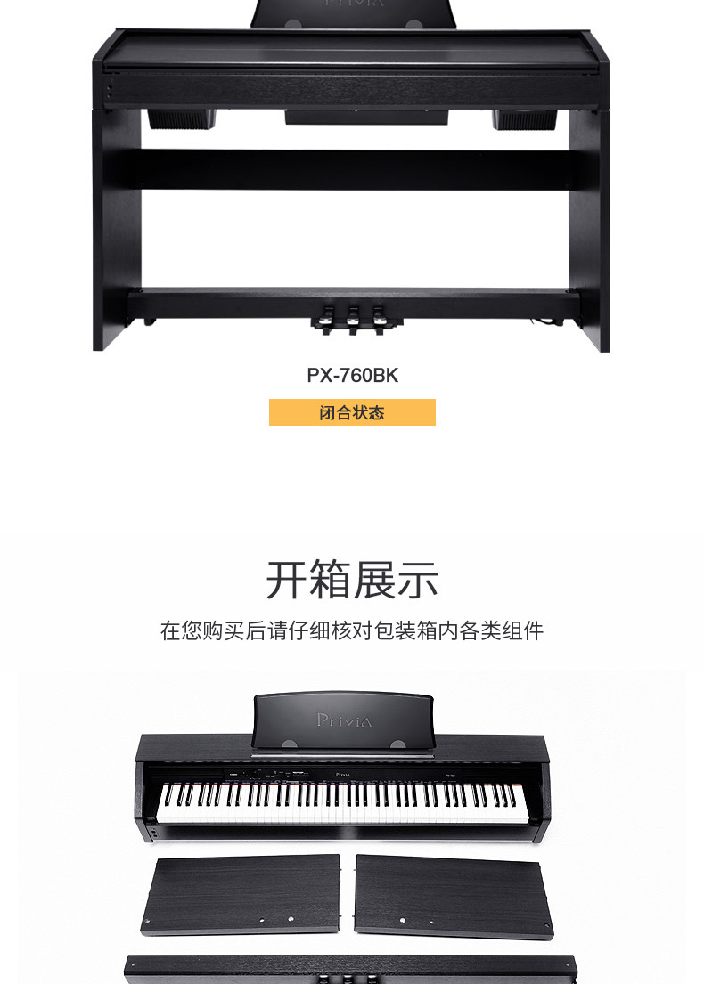 商品名称:卡西欧电钢琴PX-760成人专业88键重锤智能数码电子钢琴px760升级