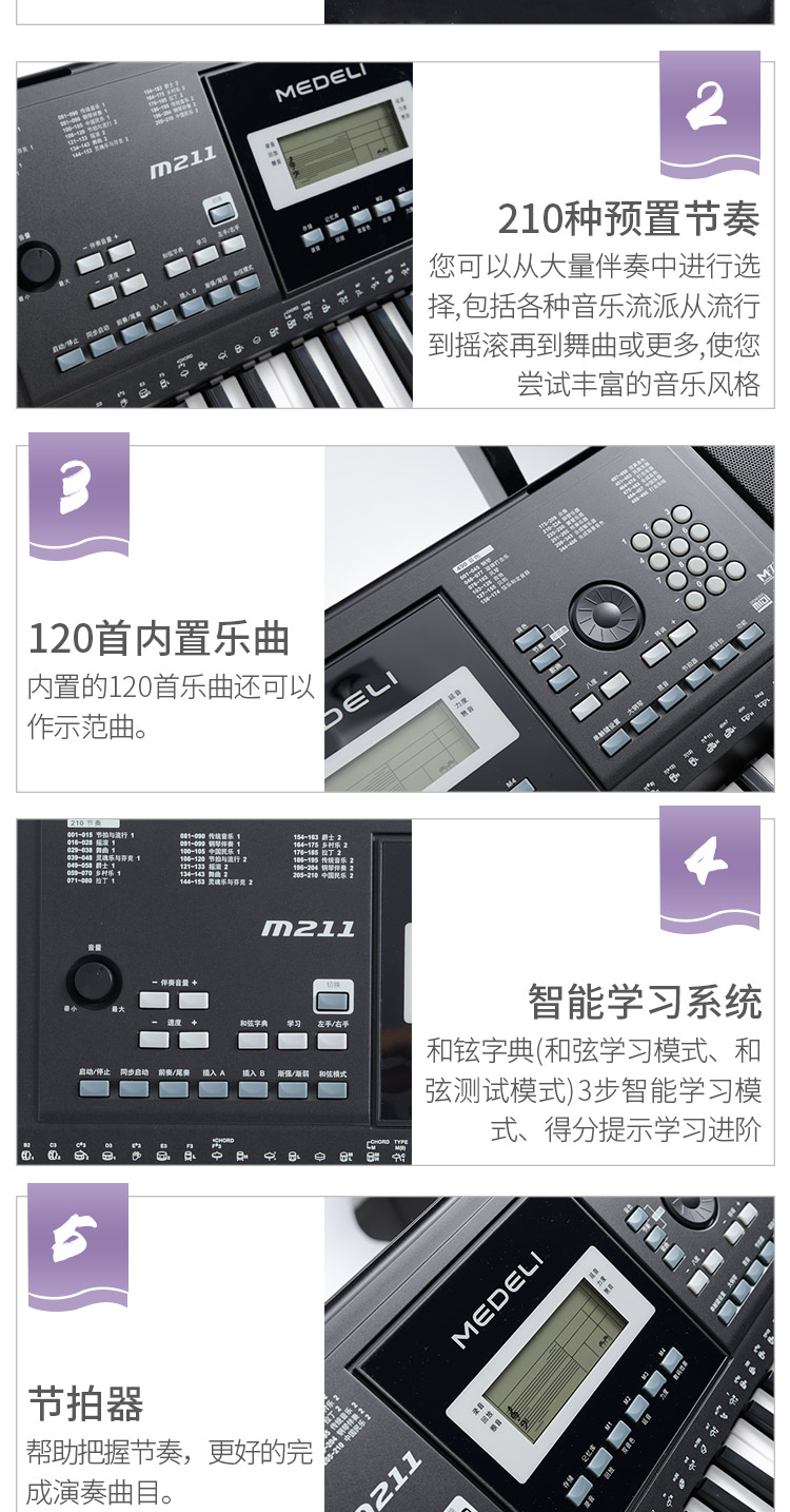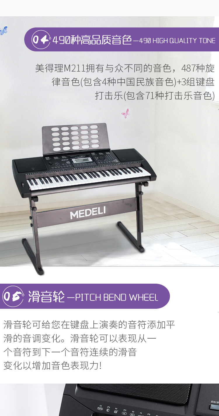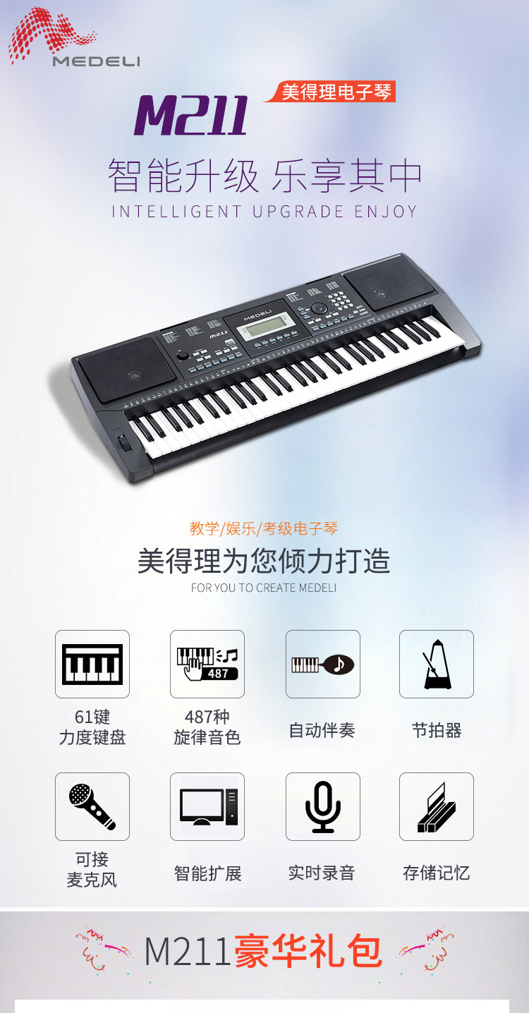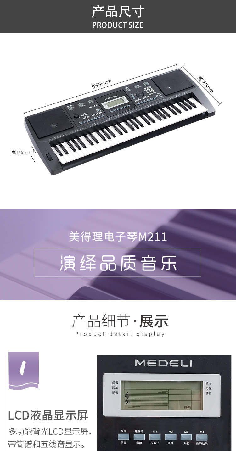 商品名称:美得理电子琴M211成人儿童61键初学入门女孩钢琴幼师教学考级家用