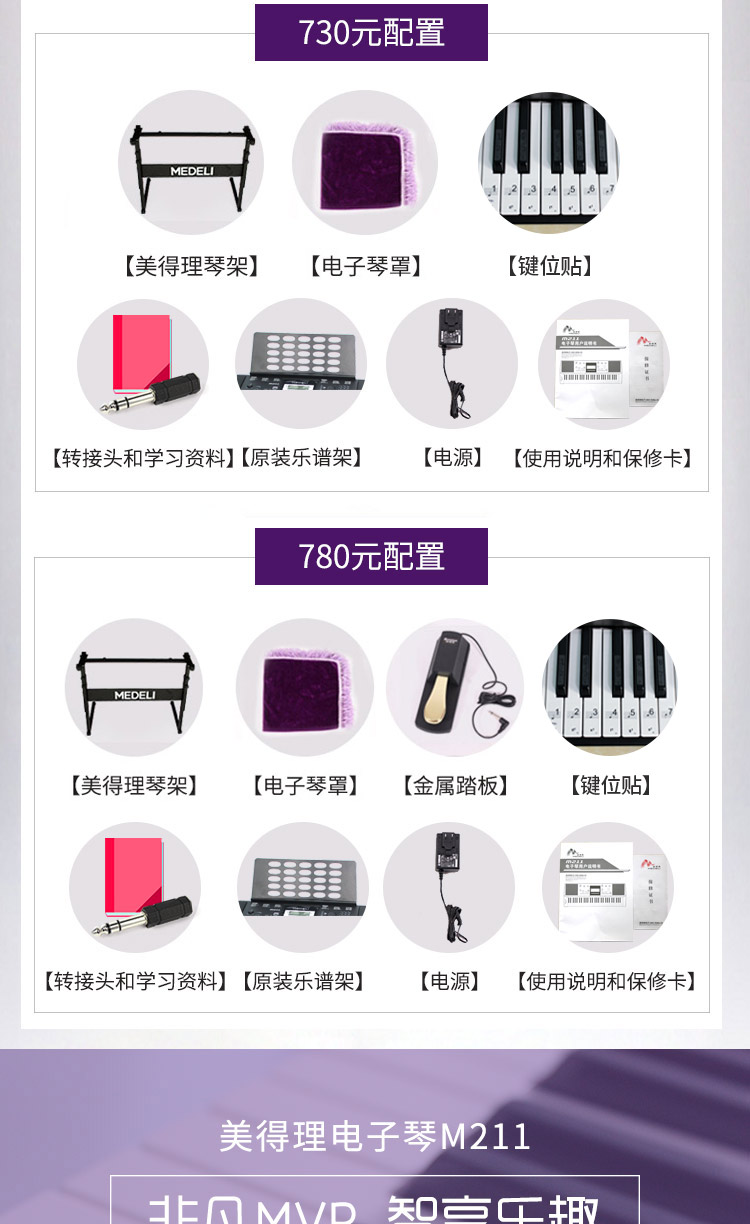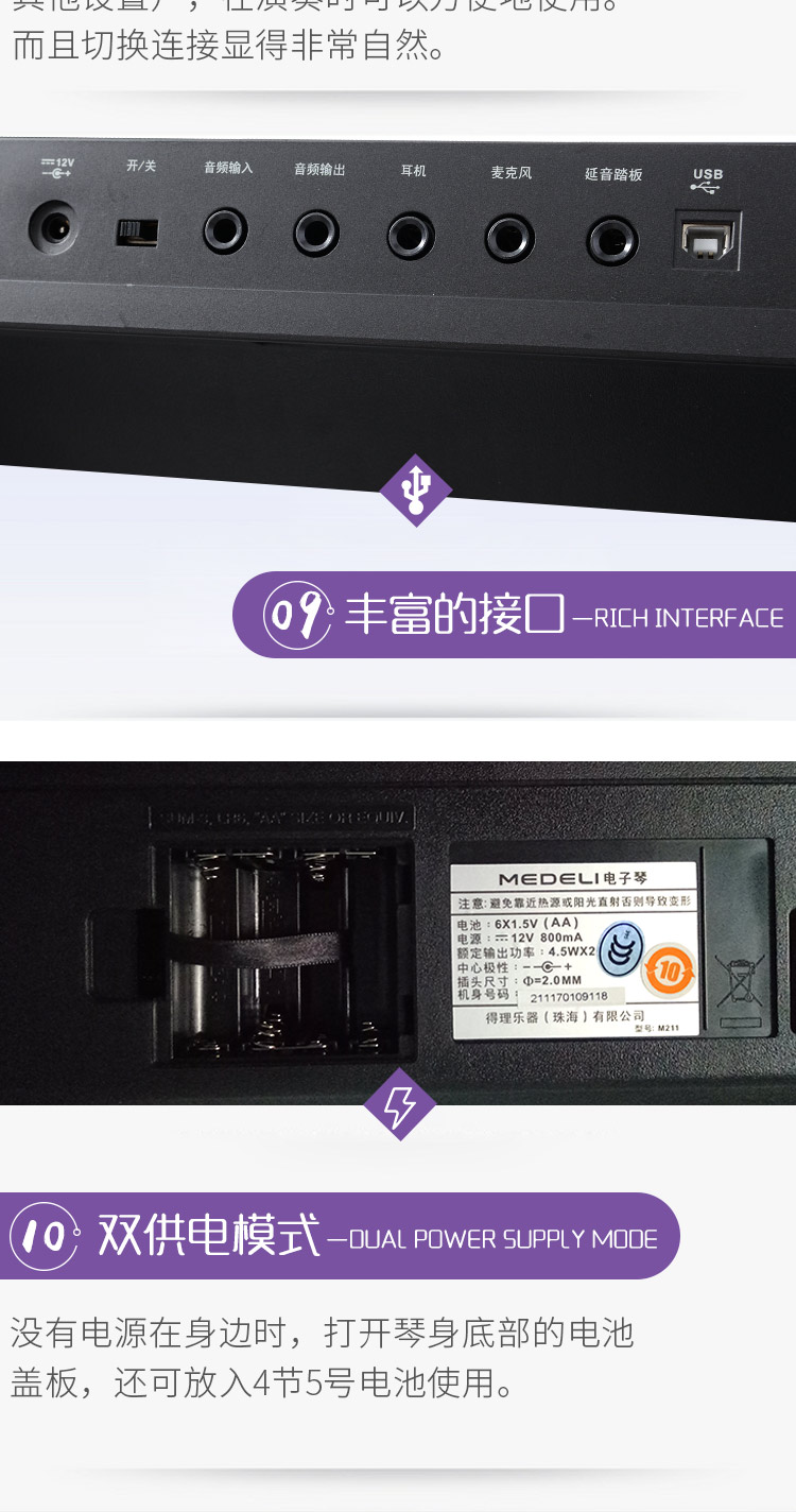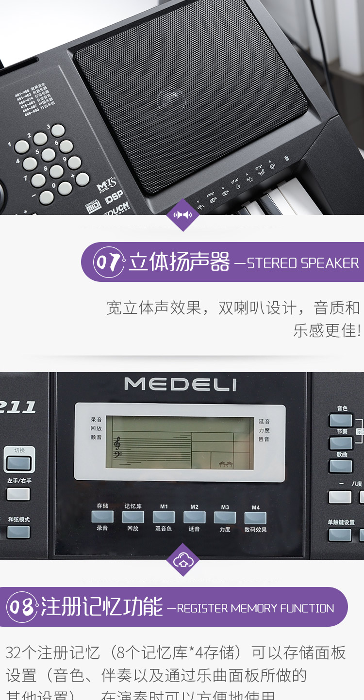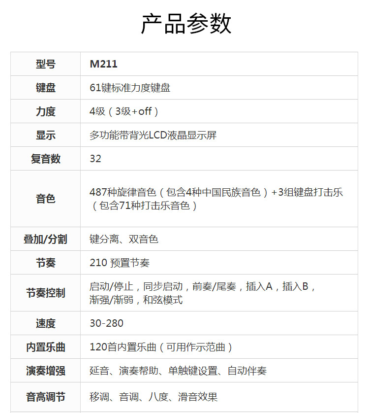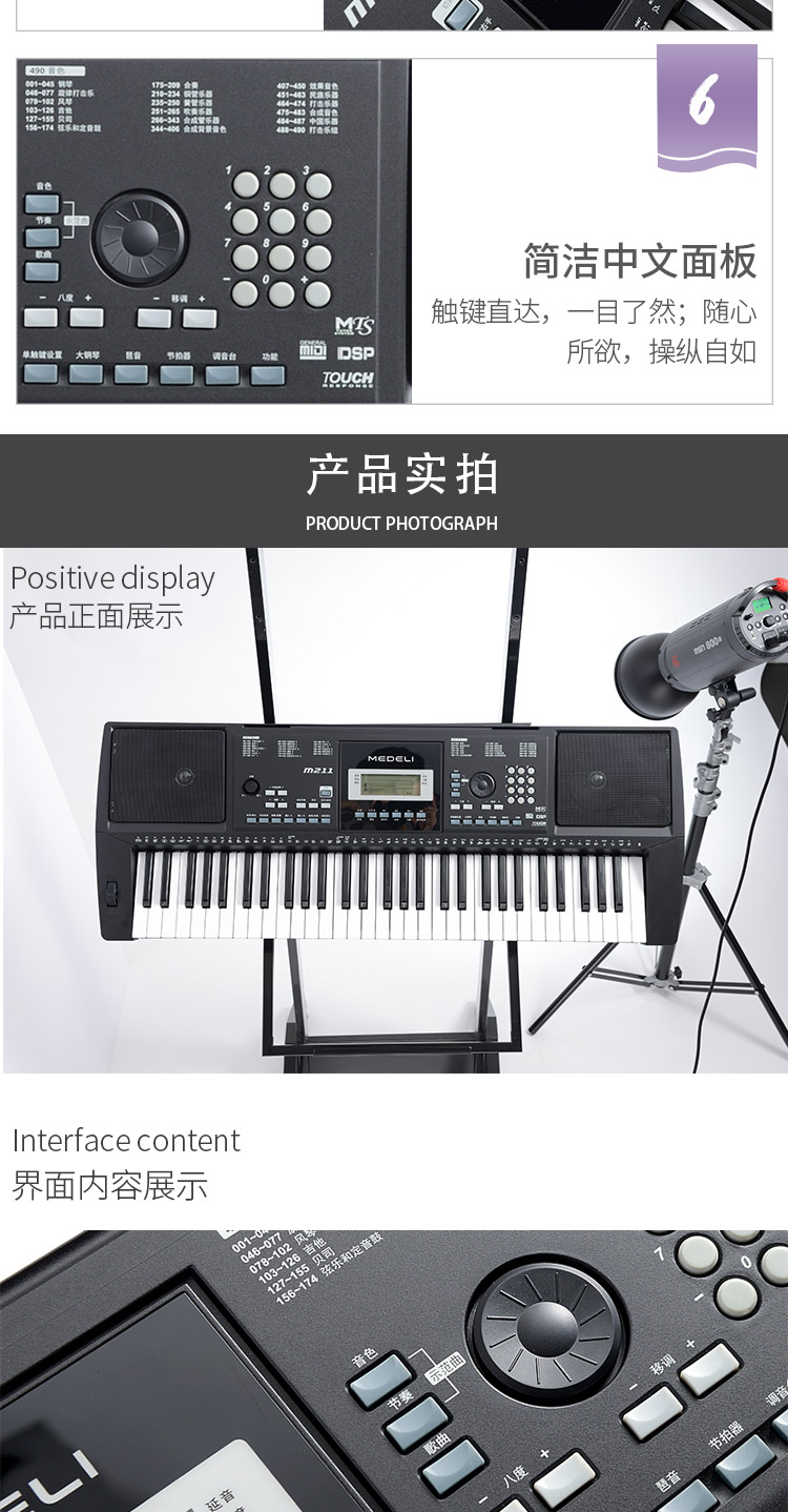 商品名称:美得理电子琴M211成人儿童61键初学入门女孩钢琴幼师教学考级家用