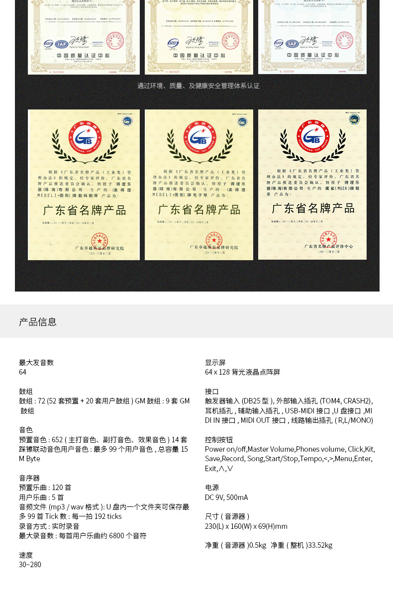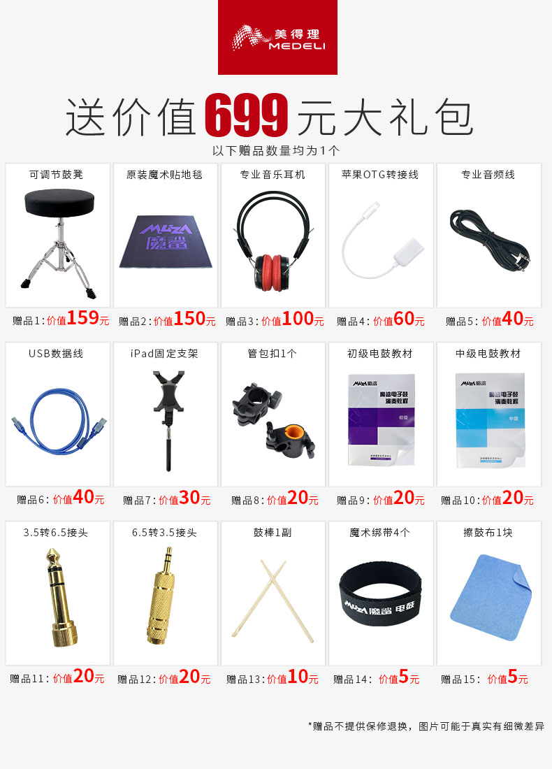 商品名称:美得理Medeli DD526智能电鼓架子鼓魔鲨电鼓打击板成人专业电子鼓