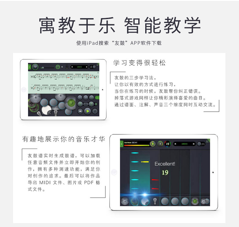 极具性价比 真皮手感 联动踩镲 智能电鼓