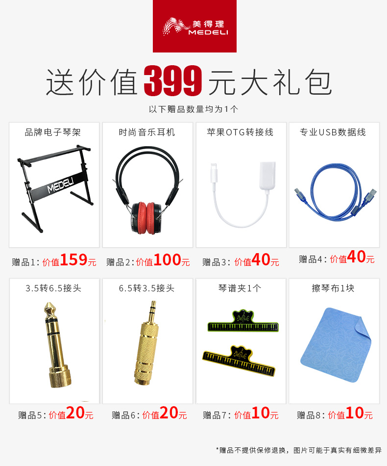 商品名称:美得理Medeli A1000专业电子琴成人初学入门者61键智能钢琴电子琴
