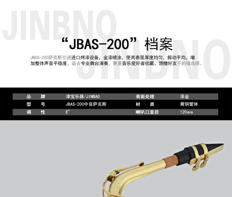 商品名称:津宝bE萨克斯津宝中音降E调JBAS-200学习演奏型萨克 正品现货