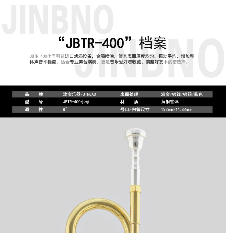 商品名称:津宝JBTR-400小号乐器 管乐器 全铜小号降B调专业小号