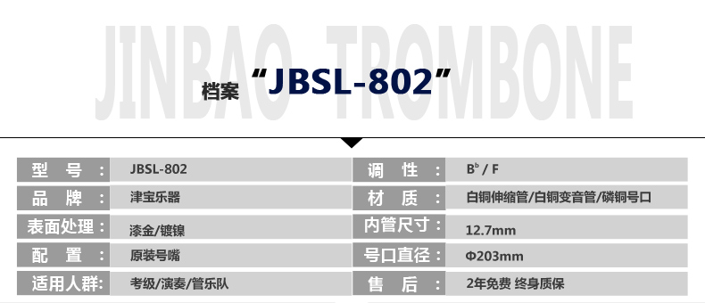 商品名称:津宝 JBSL-802 次中音变调长号 拉管 商城正品 包邮