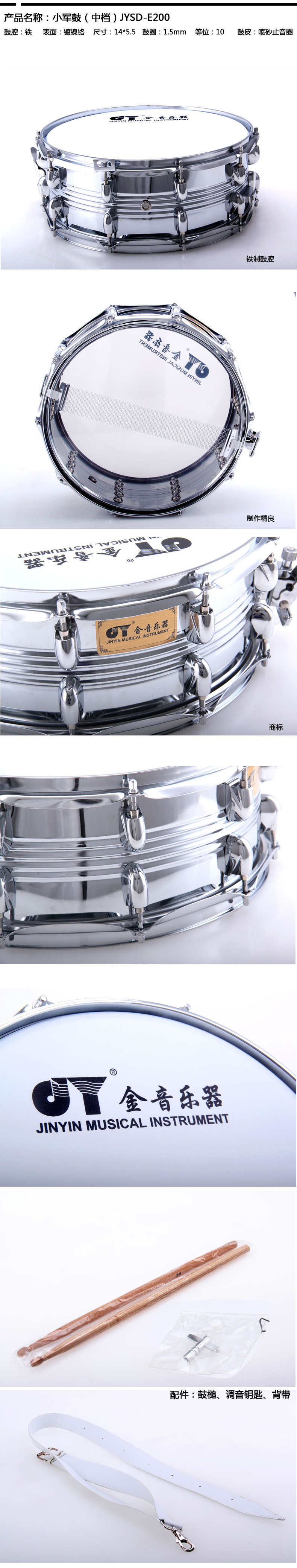 商品名称:金音乐器 小军鼓 加厚铁腔 14吋 JYSD-E200 官方直营 防伪查询