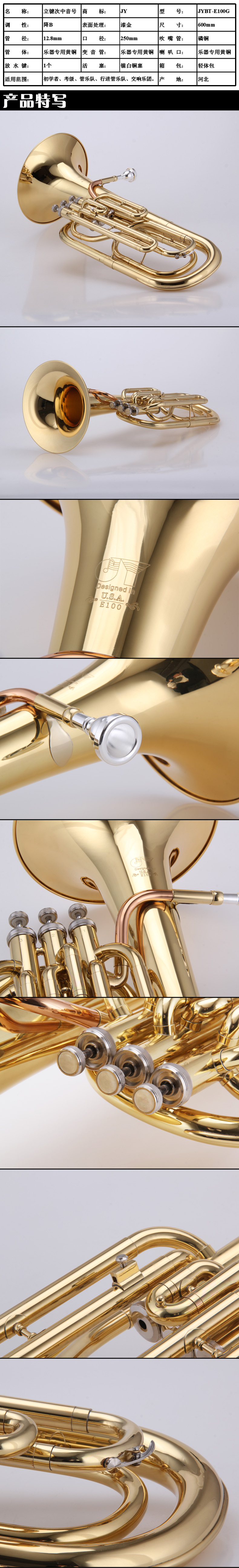 商品名称:金音乐器 立键次中音号 降B调 JYBT-E100G漆金 唯一厂家自营 防伪