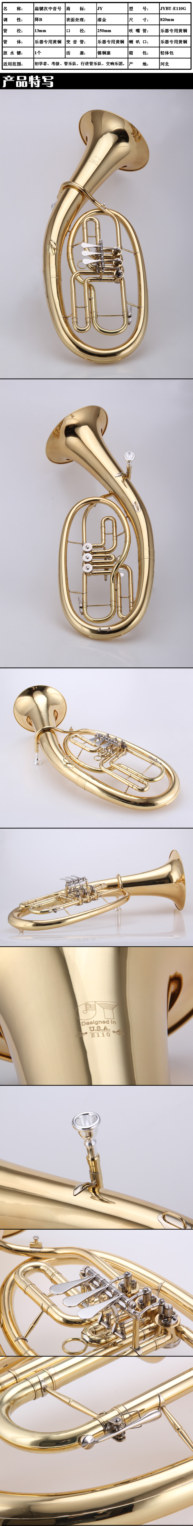商品名称:金音乐器 扁键次中音号 降B调 JYBT-E110G 漆金 厂家直营防伪查询