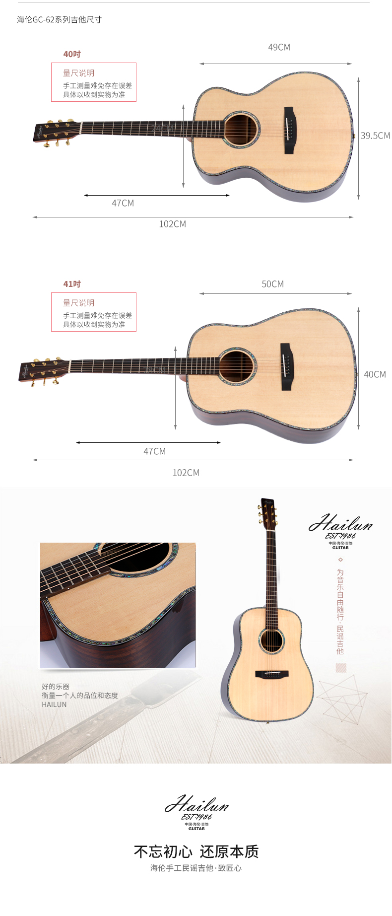 HAILUN海伦民谣吉他学生初学者专用面单40寸41寸吉他正品GC62系列