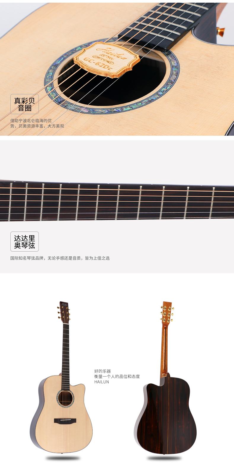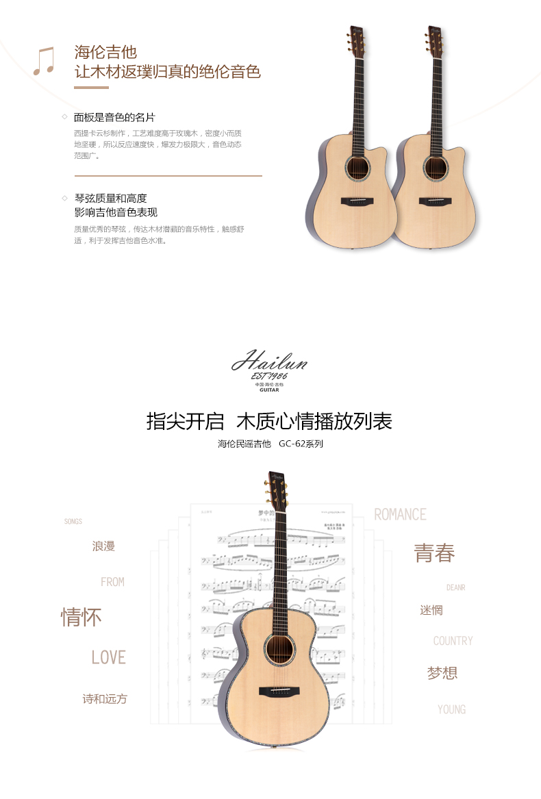 商品名称:HAILUN海伦民谣吉他学生初学者专用面单40寸41寸吉他正品GC62系列