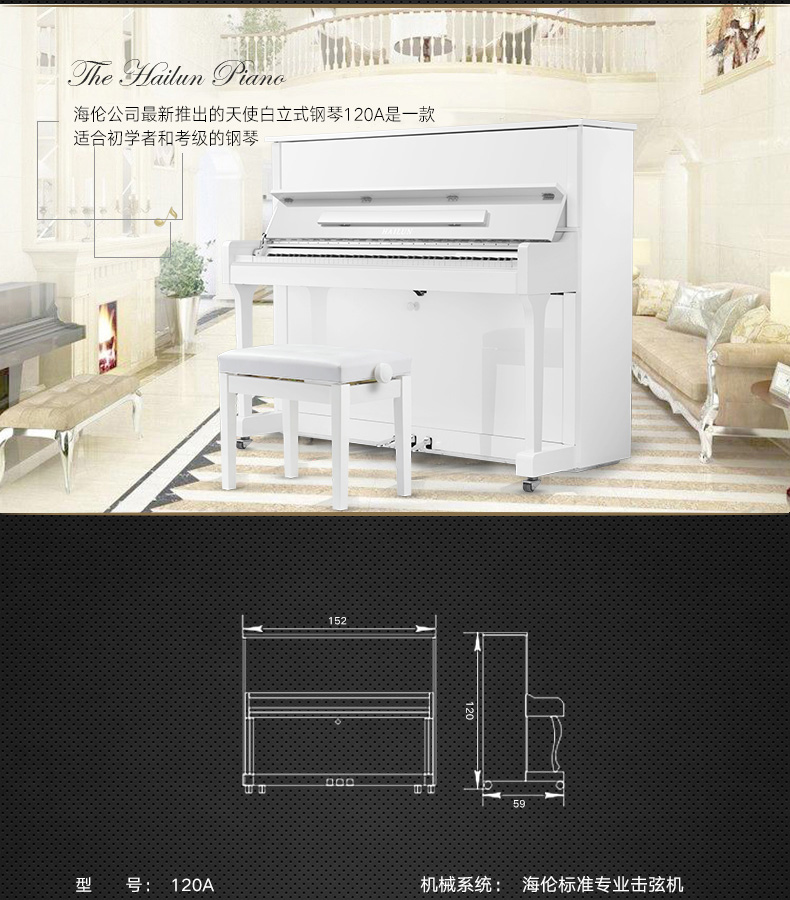 商品名称:海伦120A全新实木立式家用初学者教学演奏白色钢琴正品