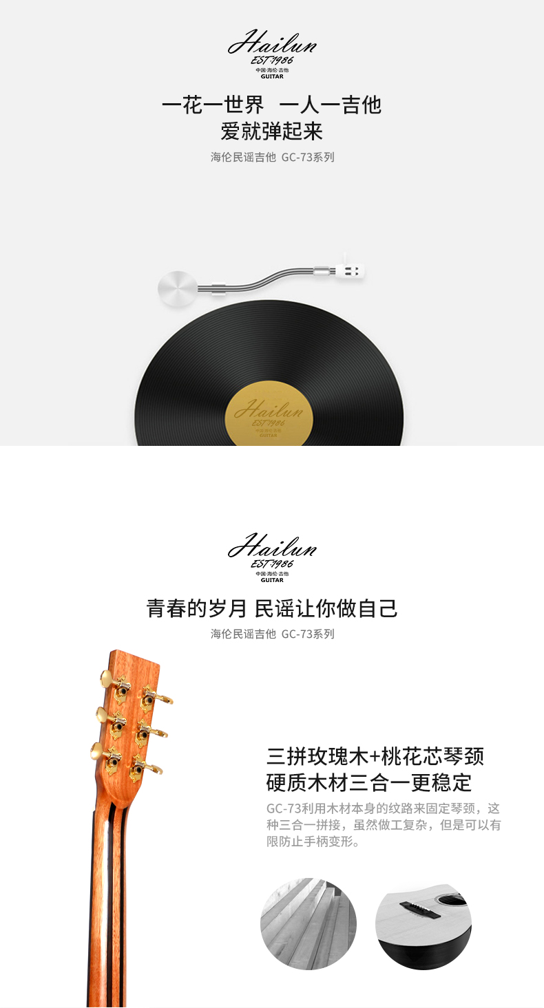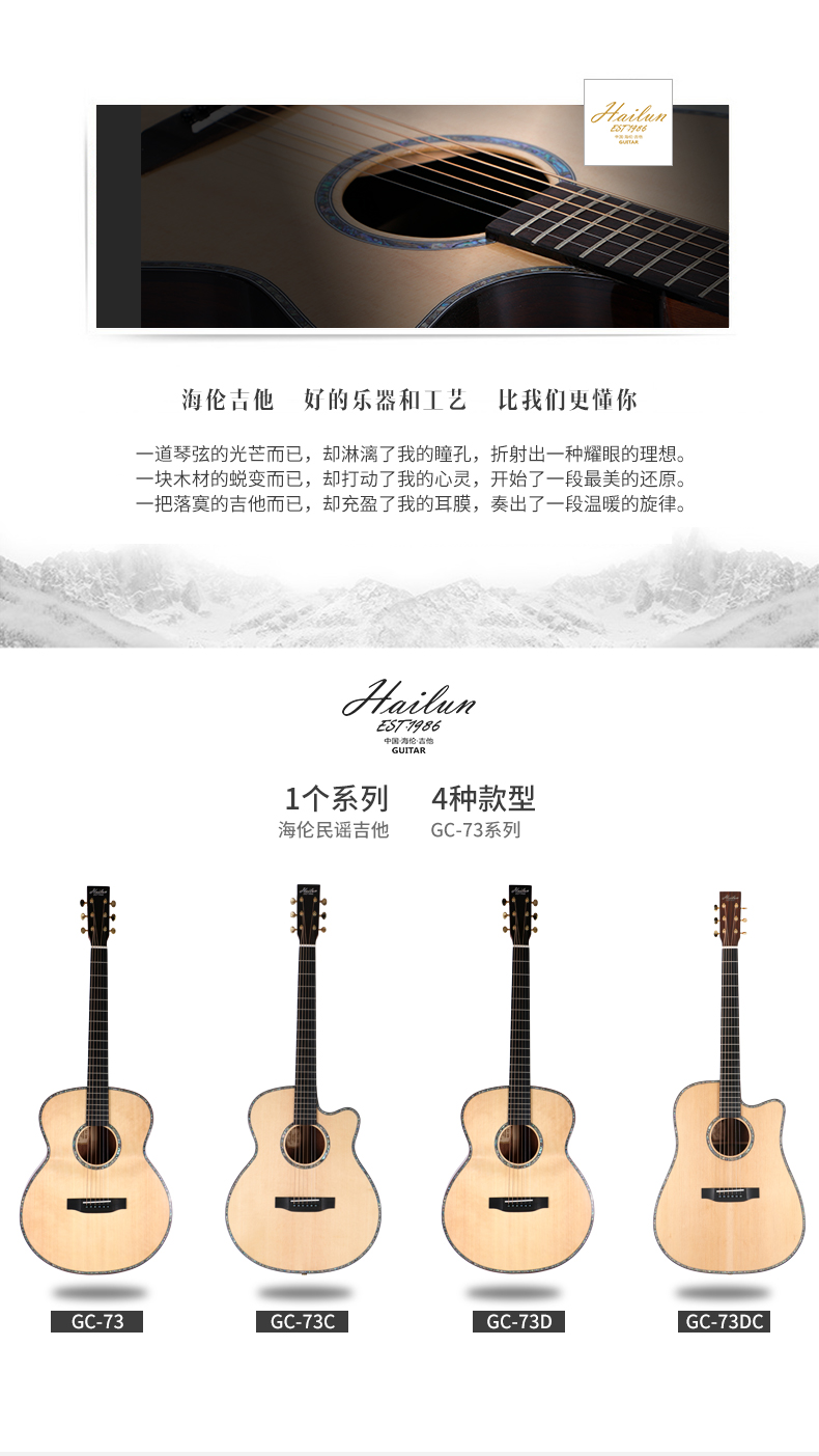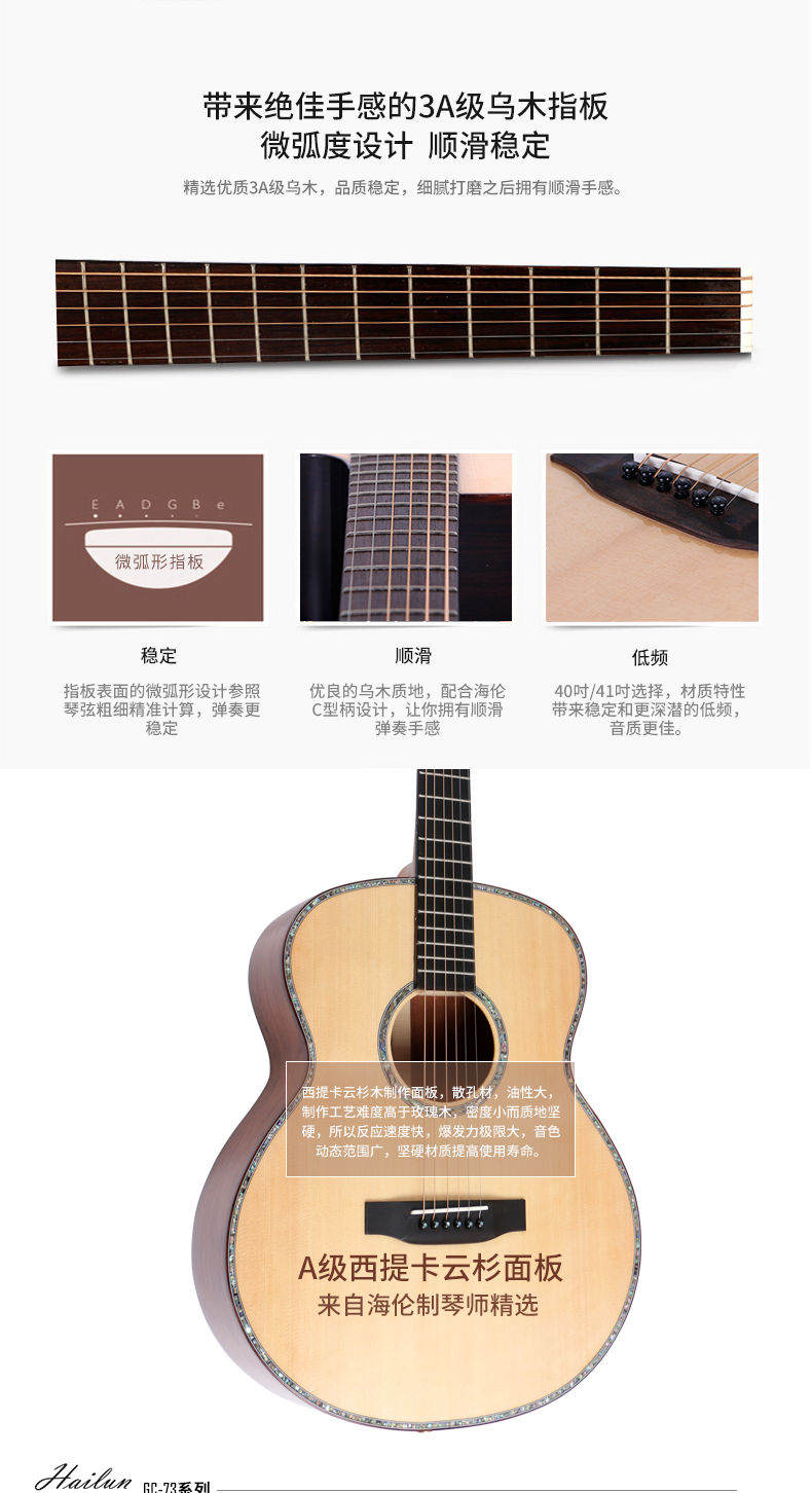 HAILUN海伦吉他 花梨木合板初学者自学练习表演专用正品GC-73系列