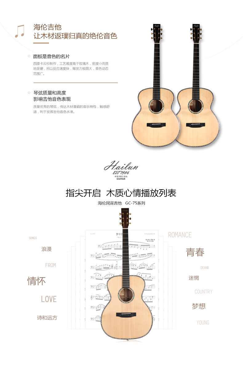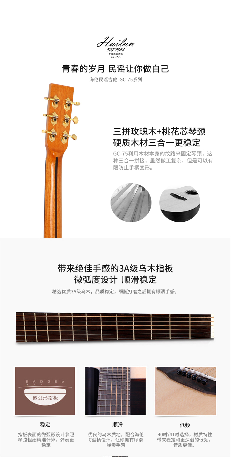 商品名称:HALLUN海伦学生民谣吉他初学者练习吉他专业演奏男女GC-55系列