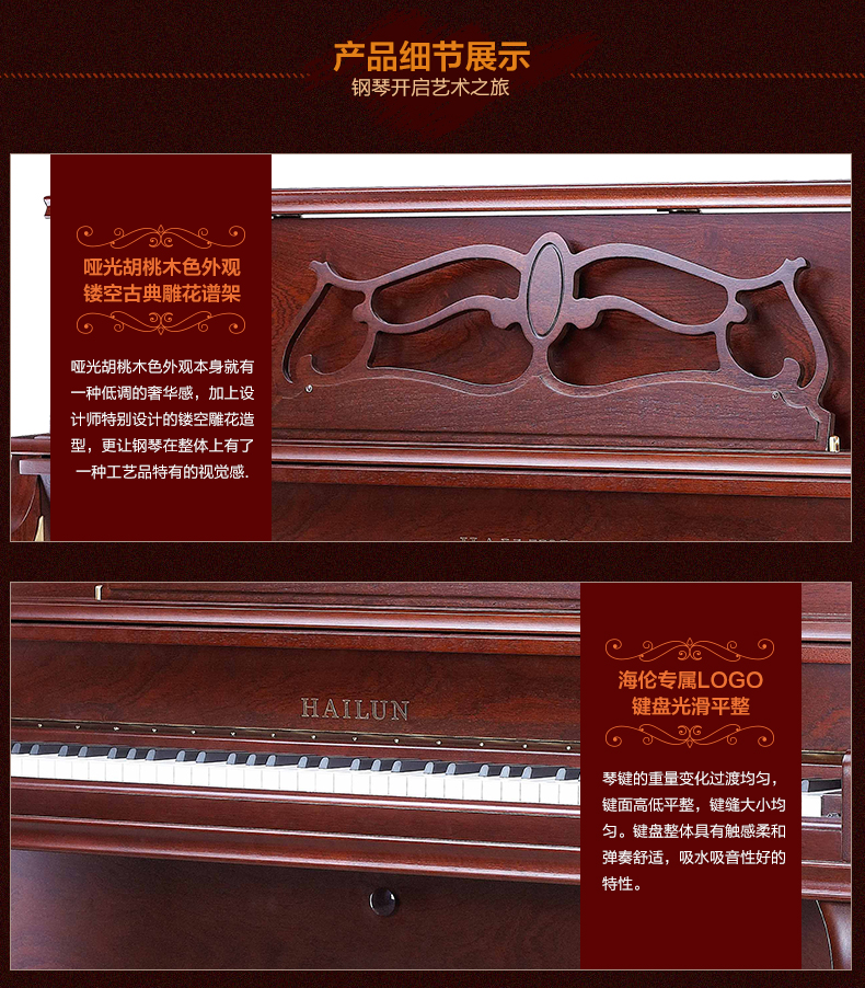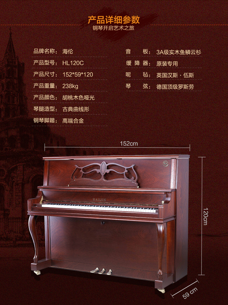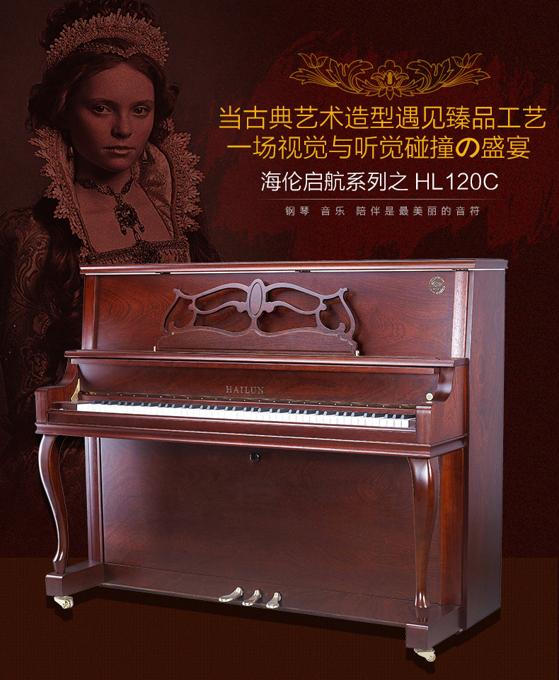 商品名称:HAILUN海伦HL120C实木专业立式钢琴全新成人初学者钢琴正品