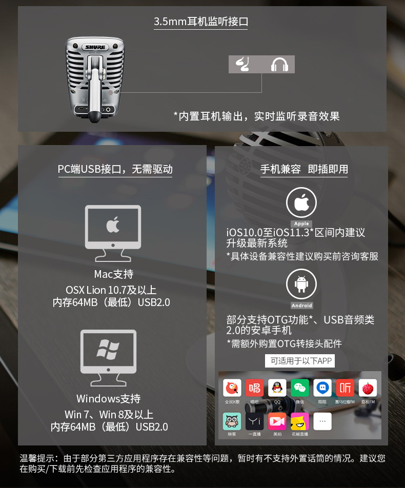 商品名称:Shure/舒尔 MV51手机K歌主播直播唱歌电容麦克风话筒 即插即用