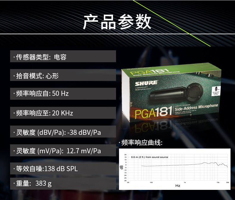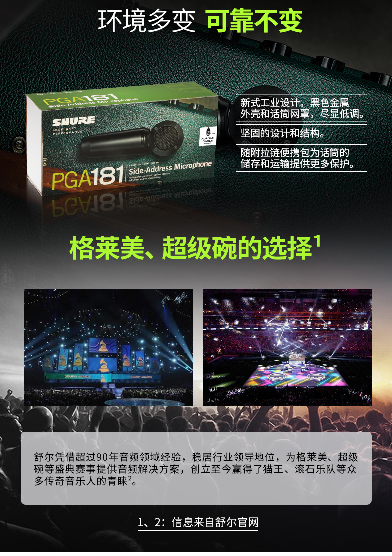 商品名称:Shure/舒尔 PGA181LC侧边拾音电容话筒 直播乐器人声录音麦克风