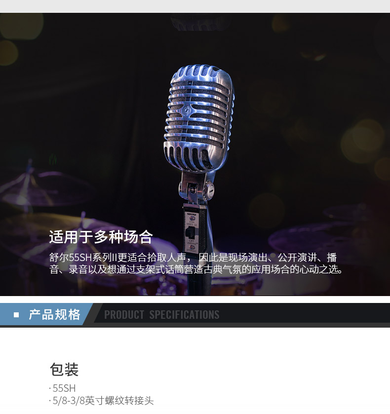 商品名称:Shure/舒尔 55SH经典人声话筒 舞台现场演出直播K歌录音麦克风