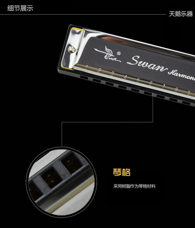 商品名称:天鹅布鲁斯10孔20音C调口琴成人儿童学生初学专业演奏蓝调乐器