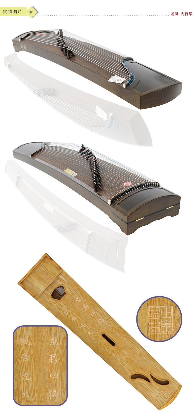 商品名称:龙凤品牌古筝9807田泉系列楠木双弧素面古筝包邮