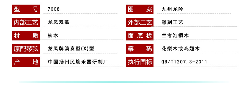 商品名称:龙凤品牌古筝7008楠木雕刻九洲龙吟古筝正品乐器