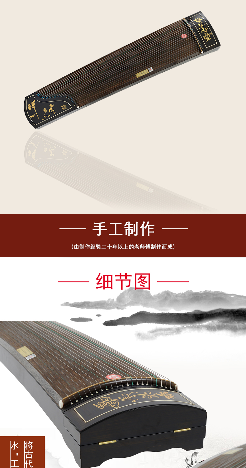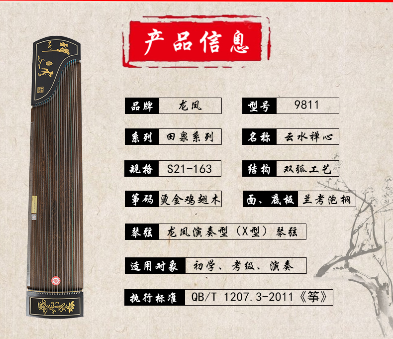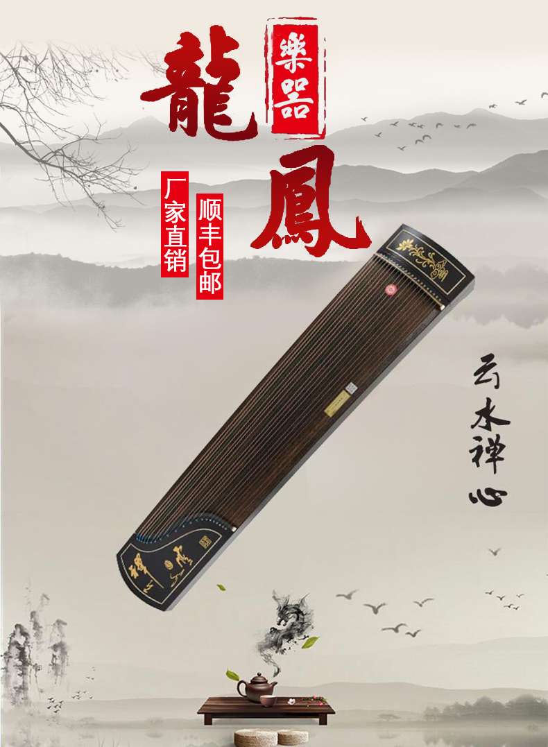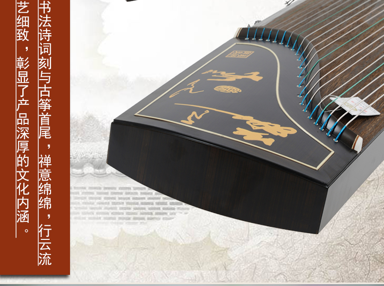 商品名称:龙凤品牌古筝厂家直销9811田泉系列黑檀刻字云水禅心包邮官网正品
