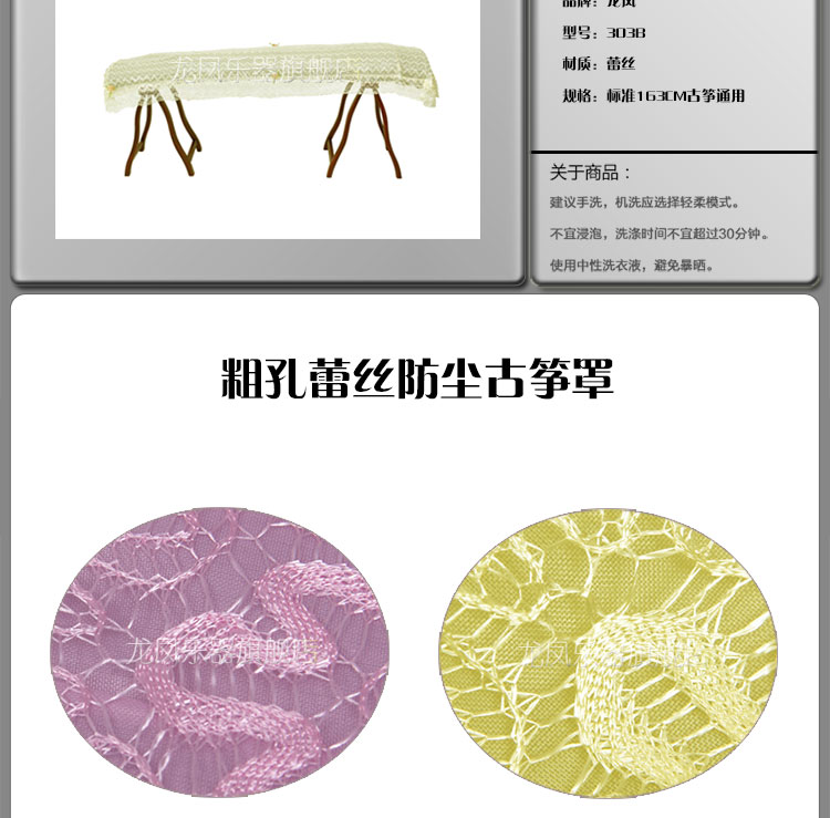 商品名称:龙凤乐器粗孔蕾丝古筝罩 古筝防尘罩包邮