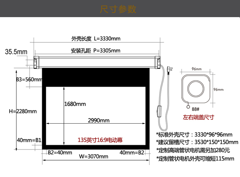 商品编号:电动幕(135寸/灰玻珠/16:9)