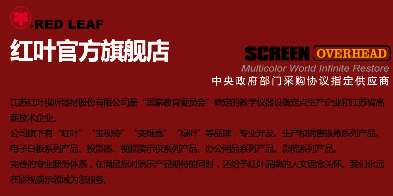 张家港红叶电动投影幕100寸16:9白塑白玻纤灰玻纤豪华吸顶天花幕