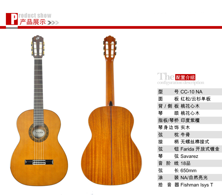 商品名称:法丽达 Farida 面单板 古典 吉他 CC-10 CS-10 新品上市