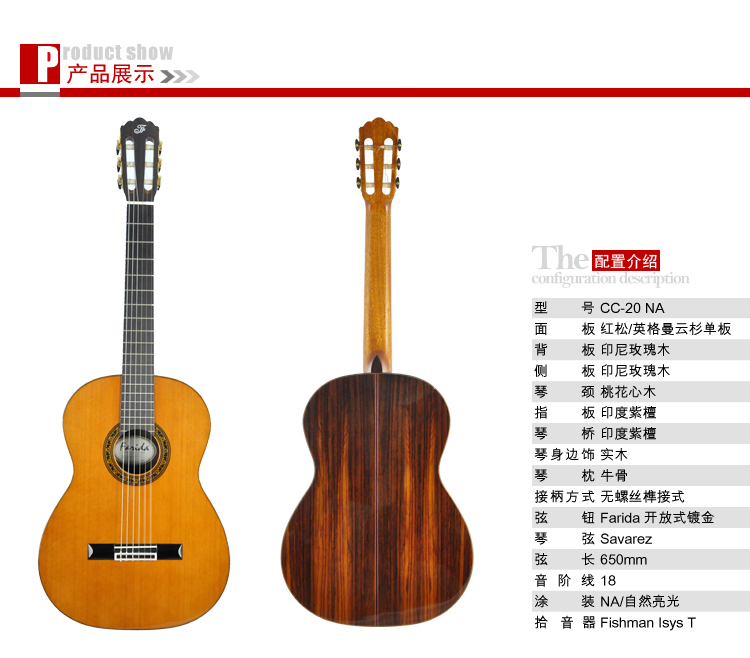 商品名称:法丽达 Farida 面单板 古典 吉他 CC-20 CS-20 新品上市
