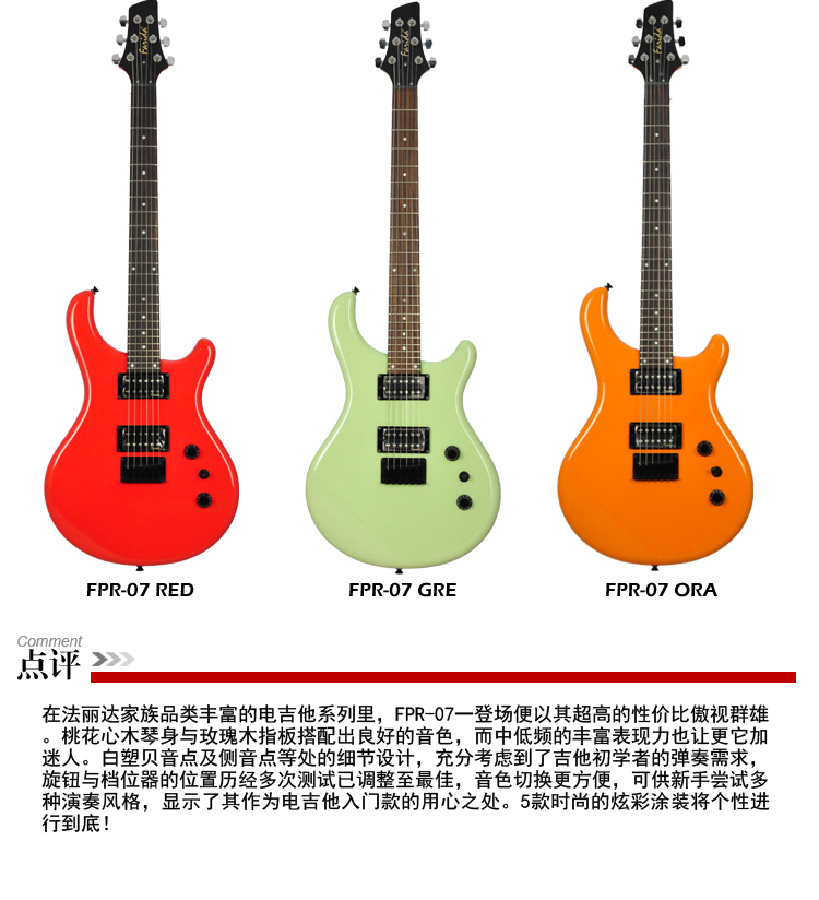 商品名称:法丽达 电吉他 新款 FPR-07 新品上市 初学者首选