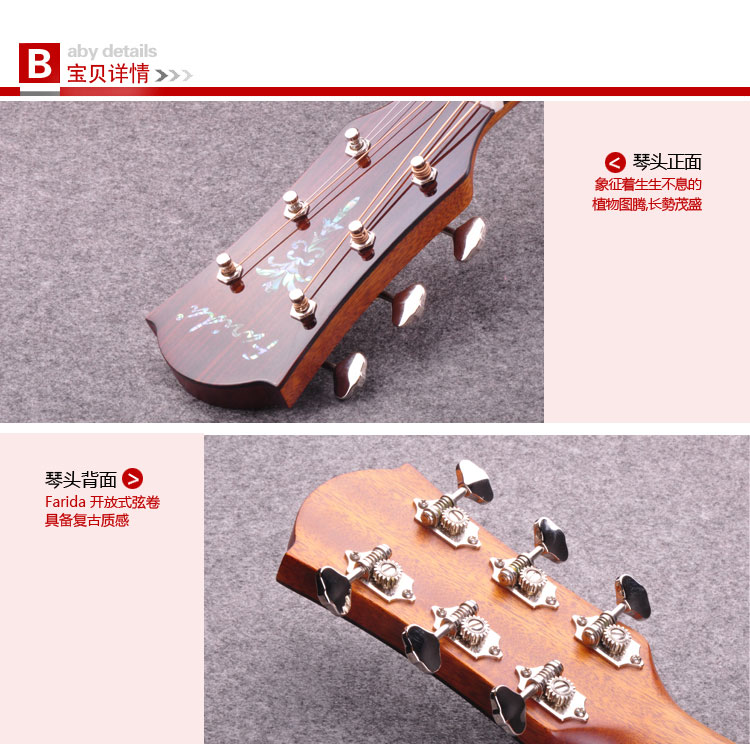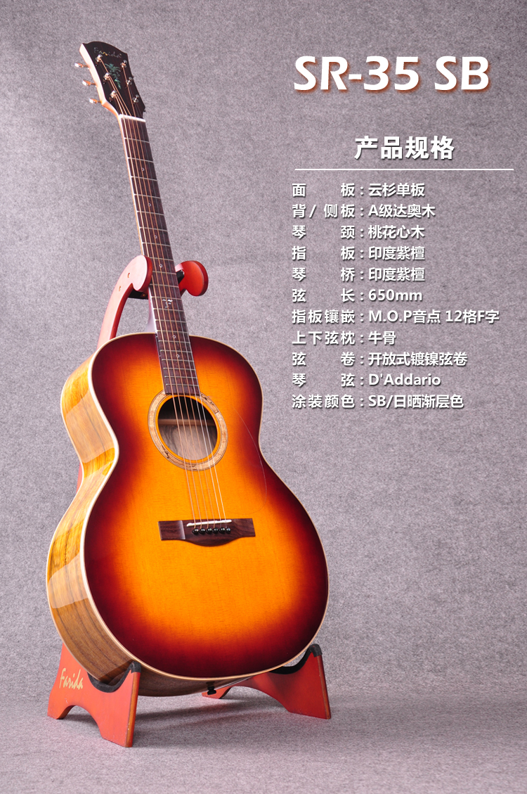 商品名称:官方新品 法丽达 Farida 高级面单 民谣吉他 SR-35 SB 送硬壳箱